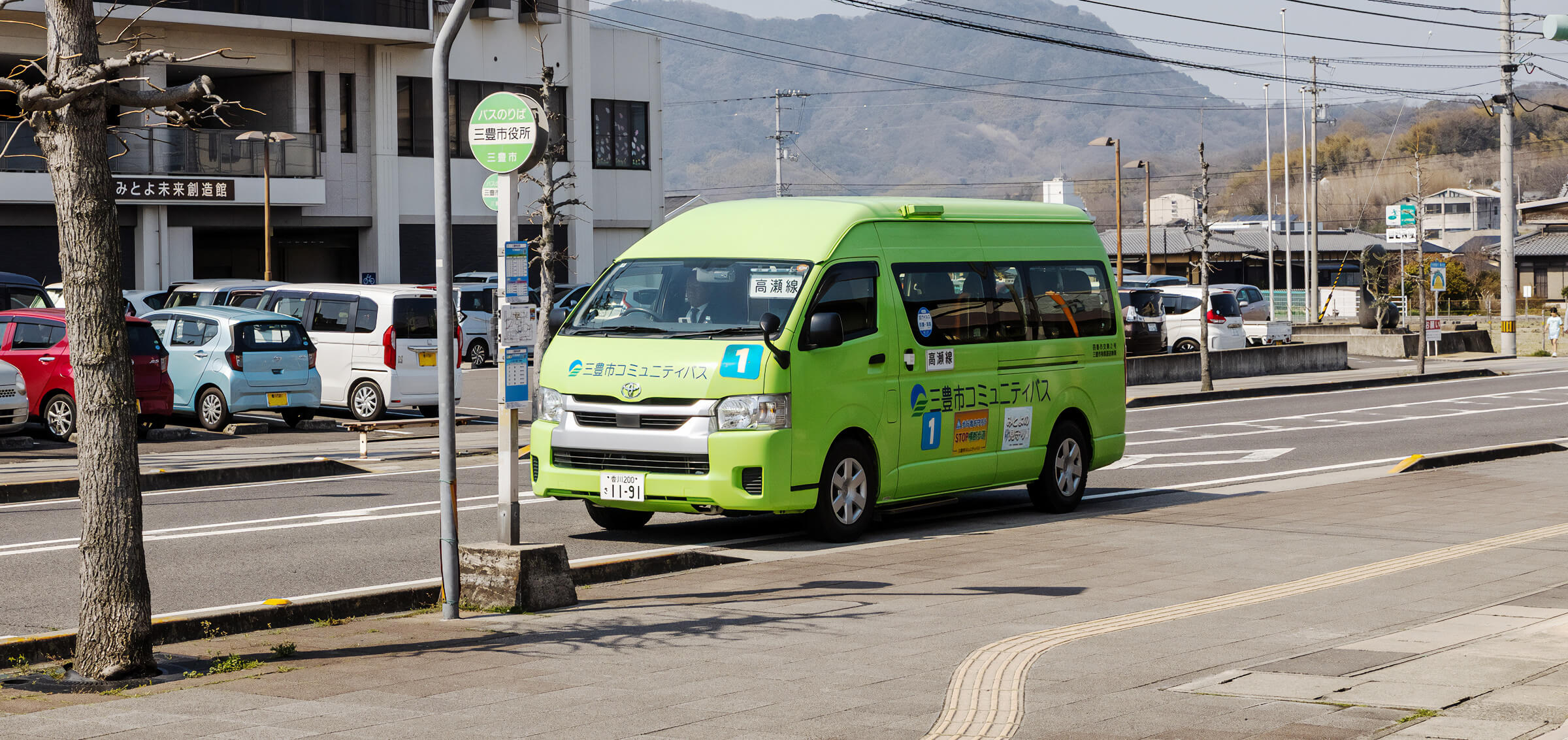 JR高瀬駅を出て南東側の「三豊市役所」バス停から、三豊市コミュニティバスをご利用ください。